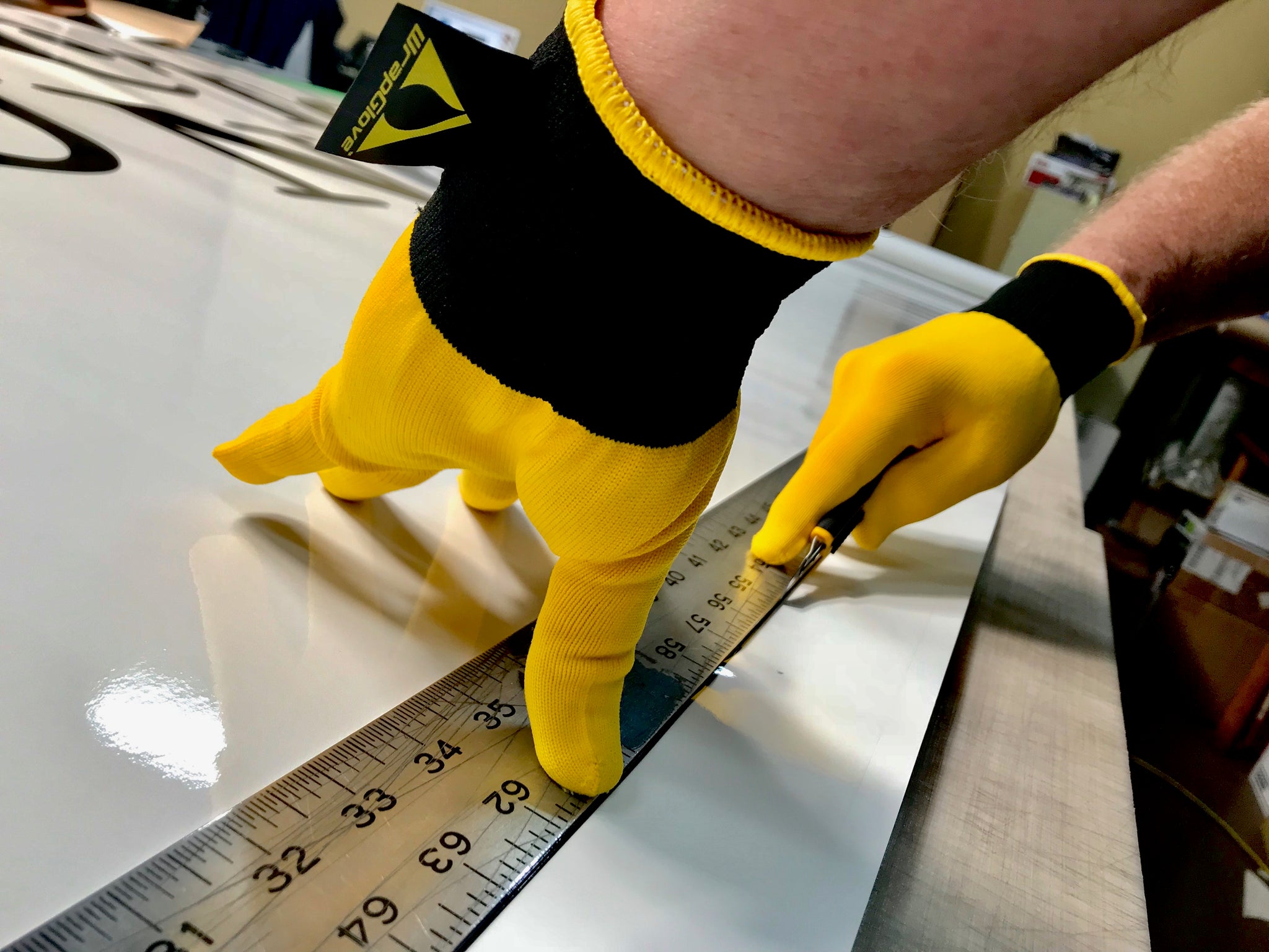 In 2006 the vehicle wrap division of WTI identified the need for a glove when applying ultra conformable wrap films with high initial tack adhesives. Those thin films not available in the USA at the time, were awesome in their ability to conform over almost any vehicles surface. In theory, it seemed like the answer to speeding up install times and opening up the industry to more intricate surfaces. Well, that’s where theory met reality, those thinner films came with baggage.