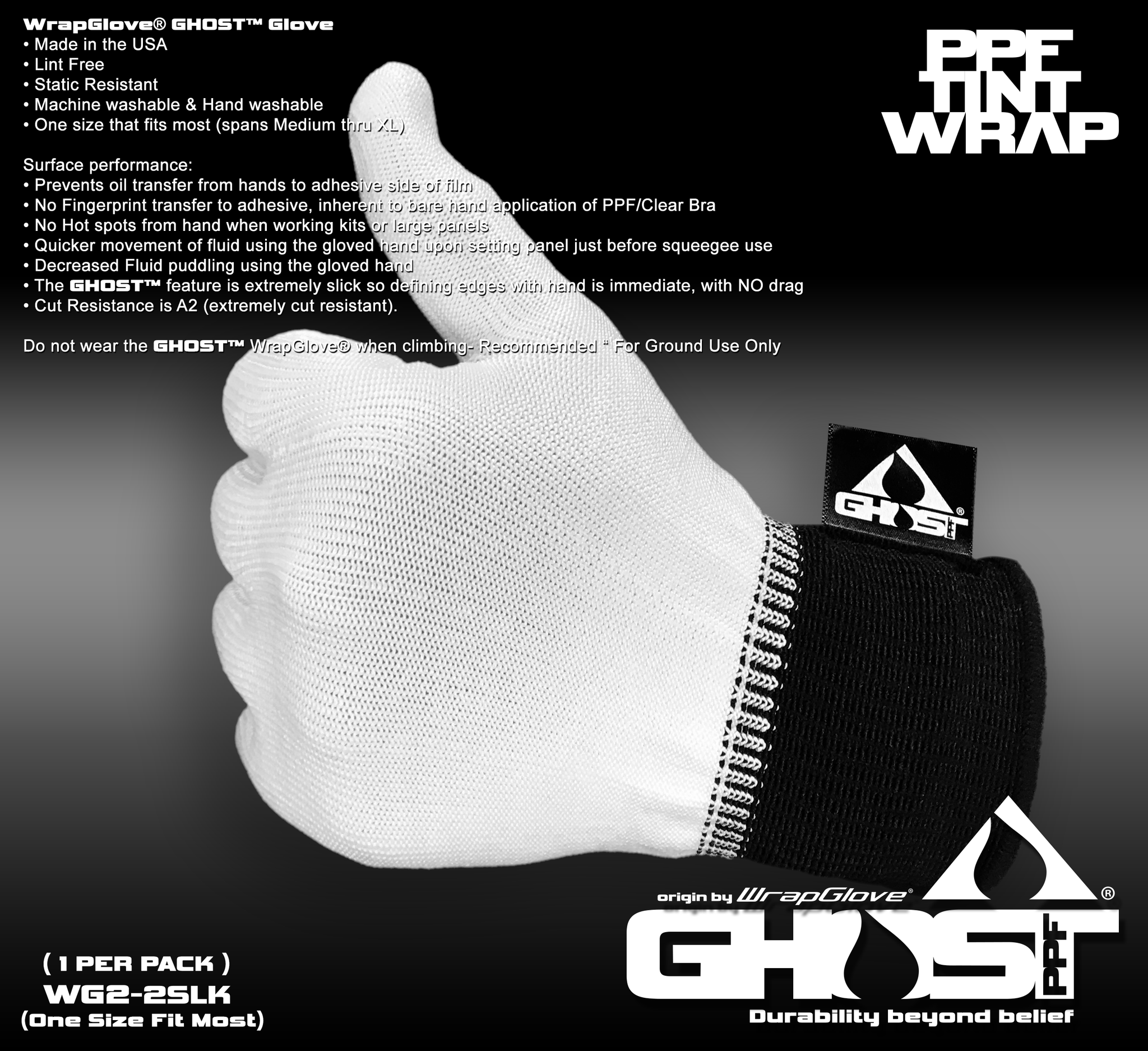 Today's WrapGlove® is specifically constructed to optimize the applicators efforts, from preventing oil transfer to the surface, reduced scratches, anti static properties reduces the attraction of airborne dust and its durability is enough to maintain all those attributes after being machined washed over and over again... WrapGlove® is a tool that is purposely built and entirely made in the USA!